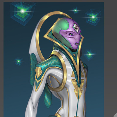 These are very early ideas for the Aethereans at a moment where we were developing their lore and abilities. In my opinion, that is the best time to do concept art. That's the moment where you dig for references and symbolisms and tie them to the needs of the game in order to create cohesive and effective designs that could be expanded in the future if needed.